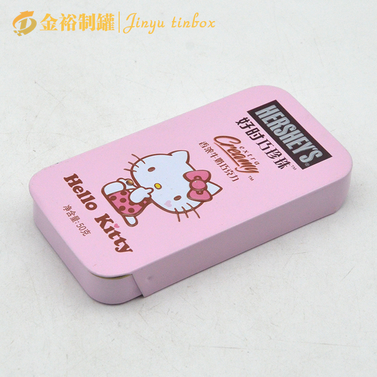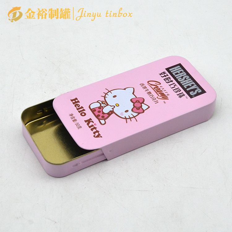 【簡介】此款推拉糖果鐵盒,是用來裝牛奶巧克力糖的,兩片罐采用推拉的形式,充滿創意,同時也相當符合人體工學設計,外觀小巧美觀,便于攜帶,受廣大兒童喜愛。