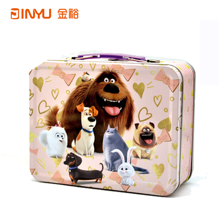 【簡介】該款手提鐵盒,可適用于兒童食品、玩具、促銷禮品等產品的外包裝,鐵盒子設計獨特,工藝印刷色彩也相對亮麗,非常適合當作禮物饋贈小朋友或者女朋友哦。