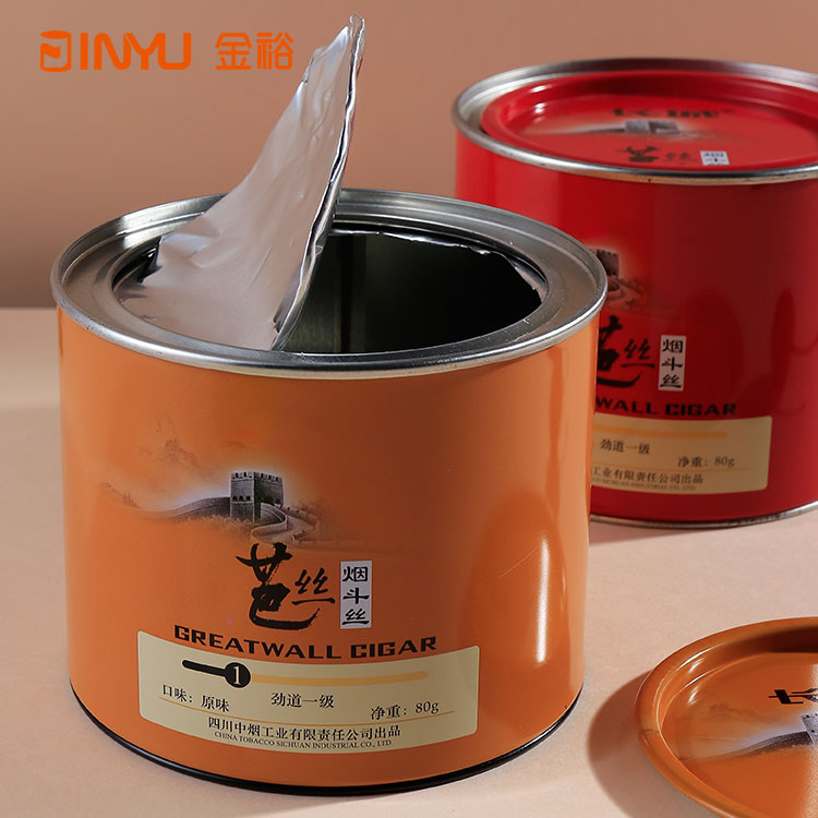 【產品簡介】此款圓形鐵罐是一款用來裝煙斗絲的包裝,該款馬口鐵罐子包裝采用內部鋁箔易撕蓋+外部內塞蓋的的形式,提升了內部產品的密封性,以及用戶體驗。其還適合各類食品的包裝,歡迎咨詢合作。