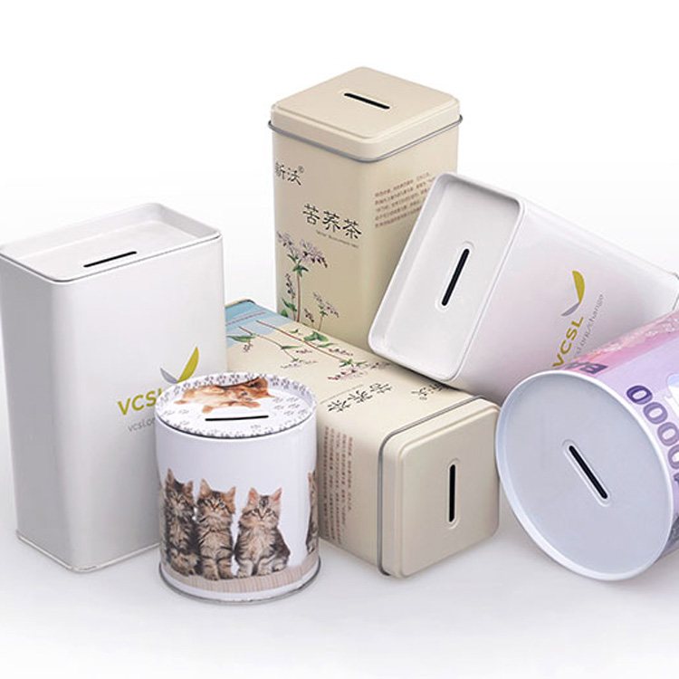 馬口鐵存錢罐的造型可以選擇不同的尺寸,方形圓形的都可以根據(jù)需求個(gè)性化定制,封底結(jié)構(gòu),天地蓋設(shè)計(jì),印刷可以選擇四色或者專色印刷。