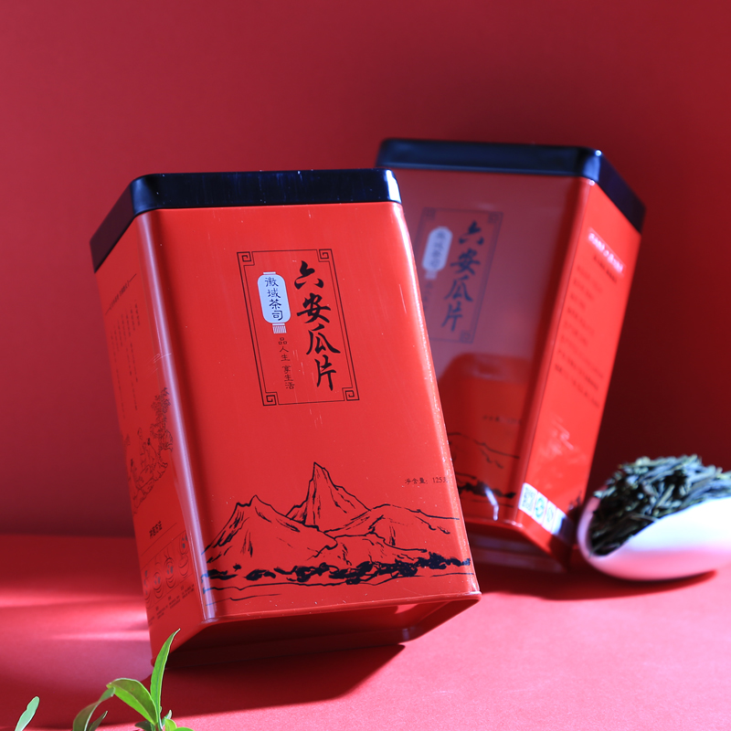 【產品簡介】這款瓜片茶葉鐵盒,采用密封性更好的雙層蓋結構,鐵盒可裝茶葉100克左右,適合定位高檔茶葉鐵盒包裝,定制印刷圖案文字,加上自己的品牌logo,提升宣傳效果。